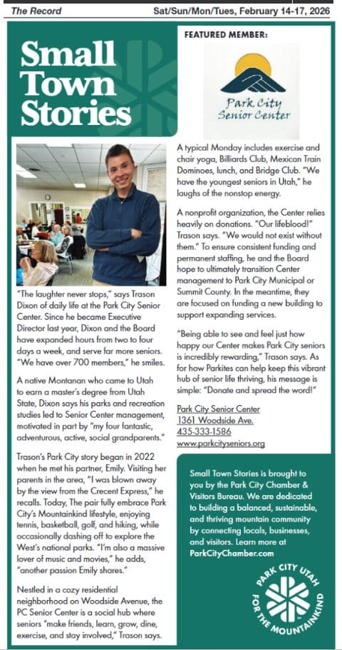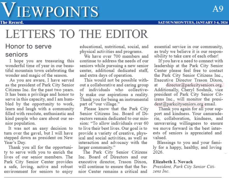 I sure hope that each and every one of you is having a fantastic and festive Holiday Season! While it is hard to believe, another year is in the books, folks! Say hello to 2026, which promises to be among the most momentous years in the Park City Senior Center’s history.